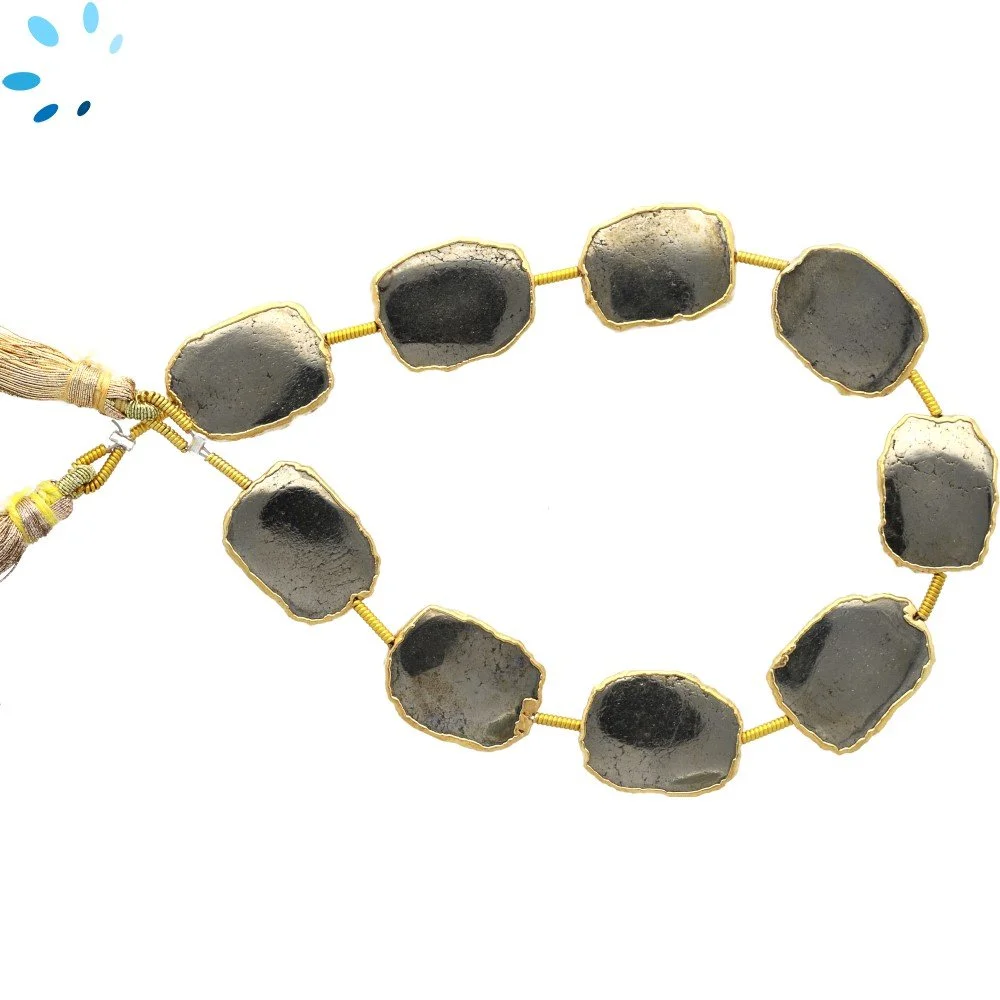 Pyrite Top to Bottom Drilled Slice Beads 15x12mm - 18k Gold Electroplated