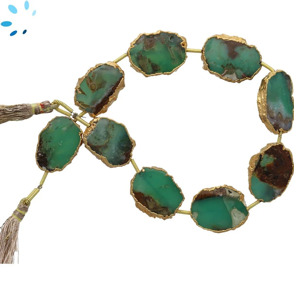 Chrysoprase Top to Bottom Drilled Slice Beads 18x14 - 20x15mm - 18k Gold Electroplated