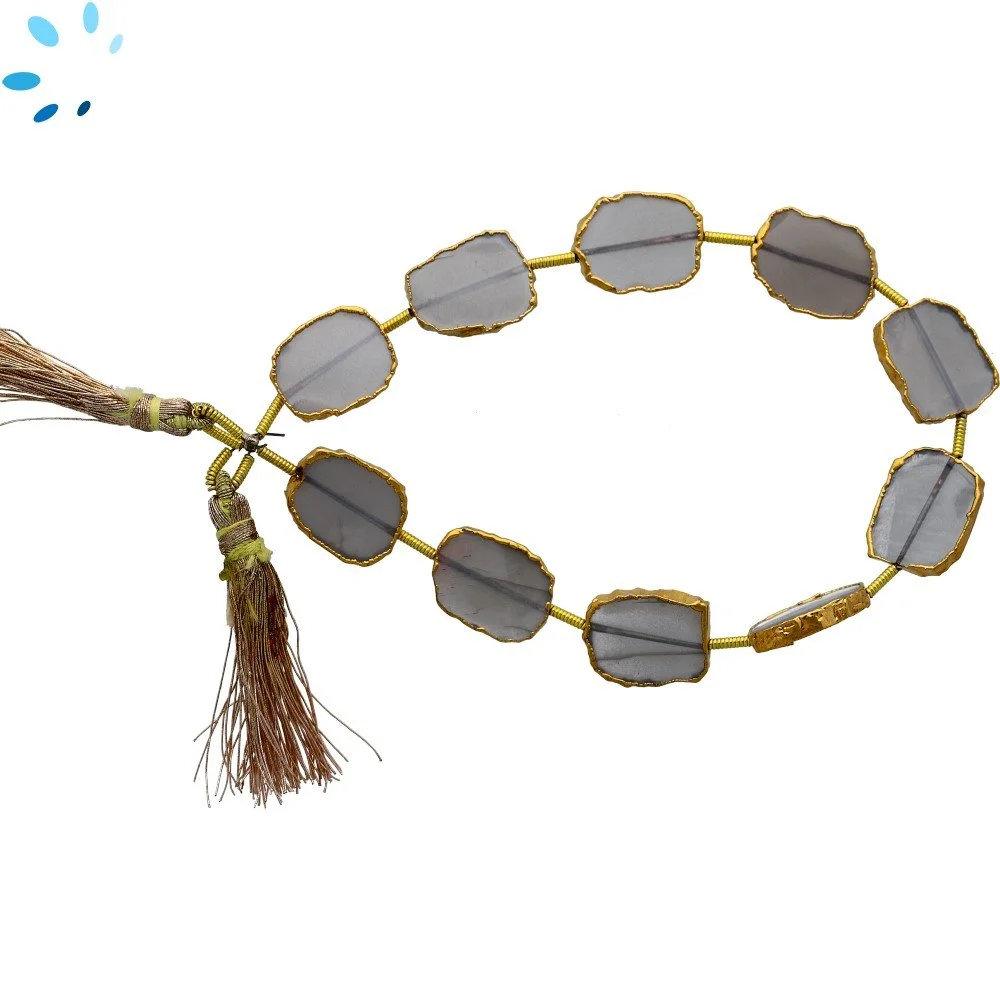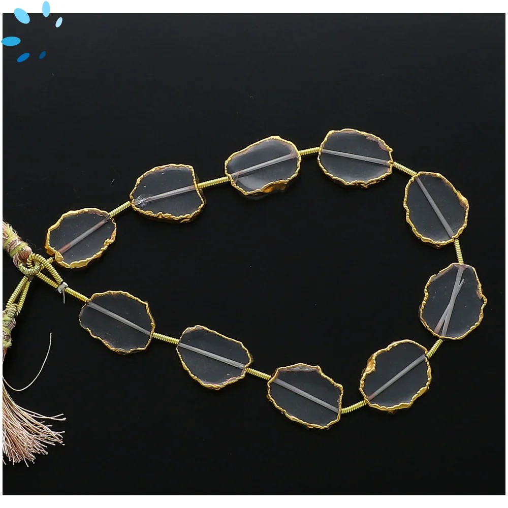 Crystal Quartz Top to Bottom Drilled Slice Beads 15x12mm - 18k Gold Electroplated