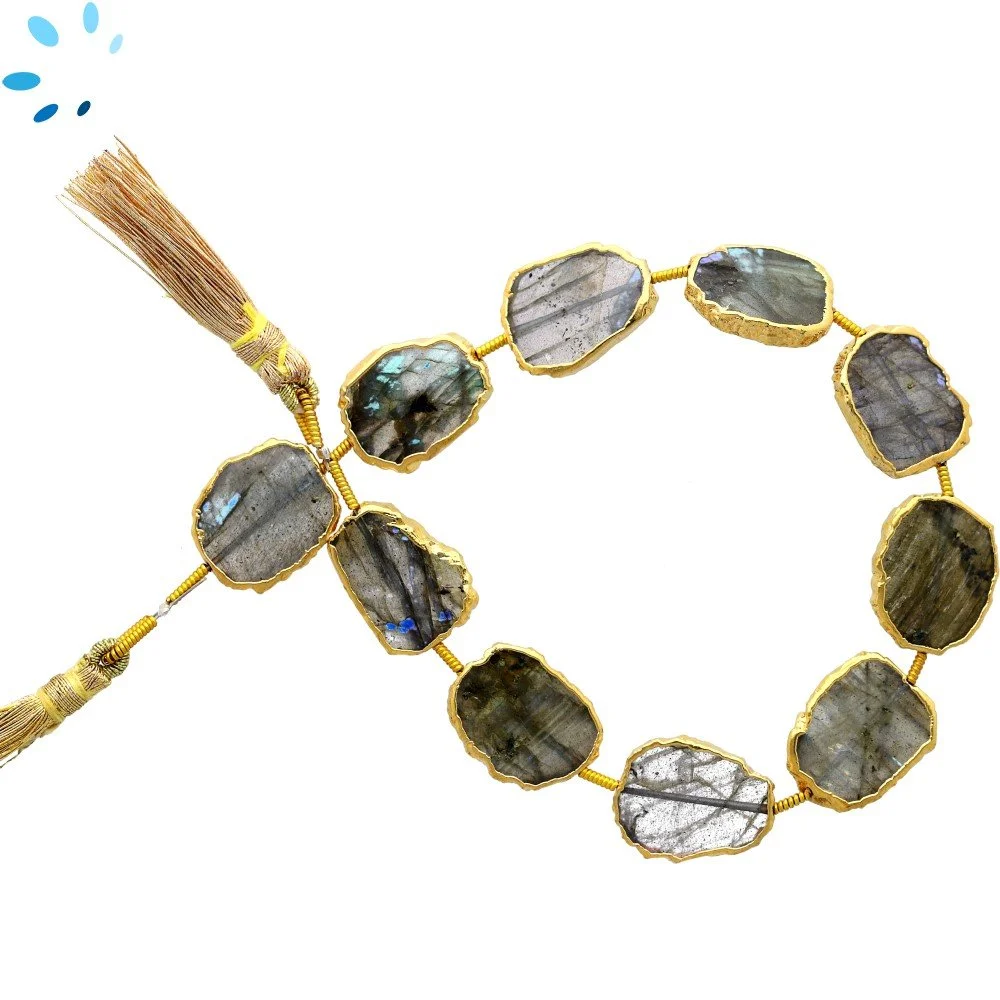 Labradorite Top to Bottom Drilled Slice Beads 15x11 - 17x13mm - 18k Gold Electroplated