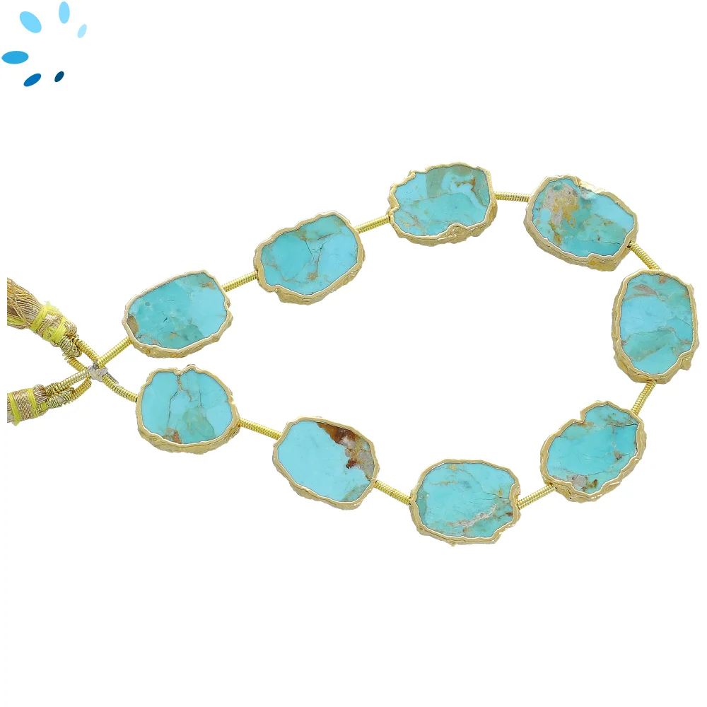 Turquoise Top to Bottom Drilled Slice Beads 16x11mm - 18k Gold Electroplated