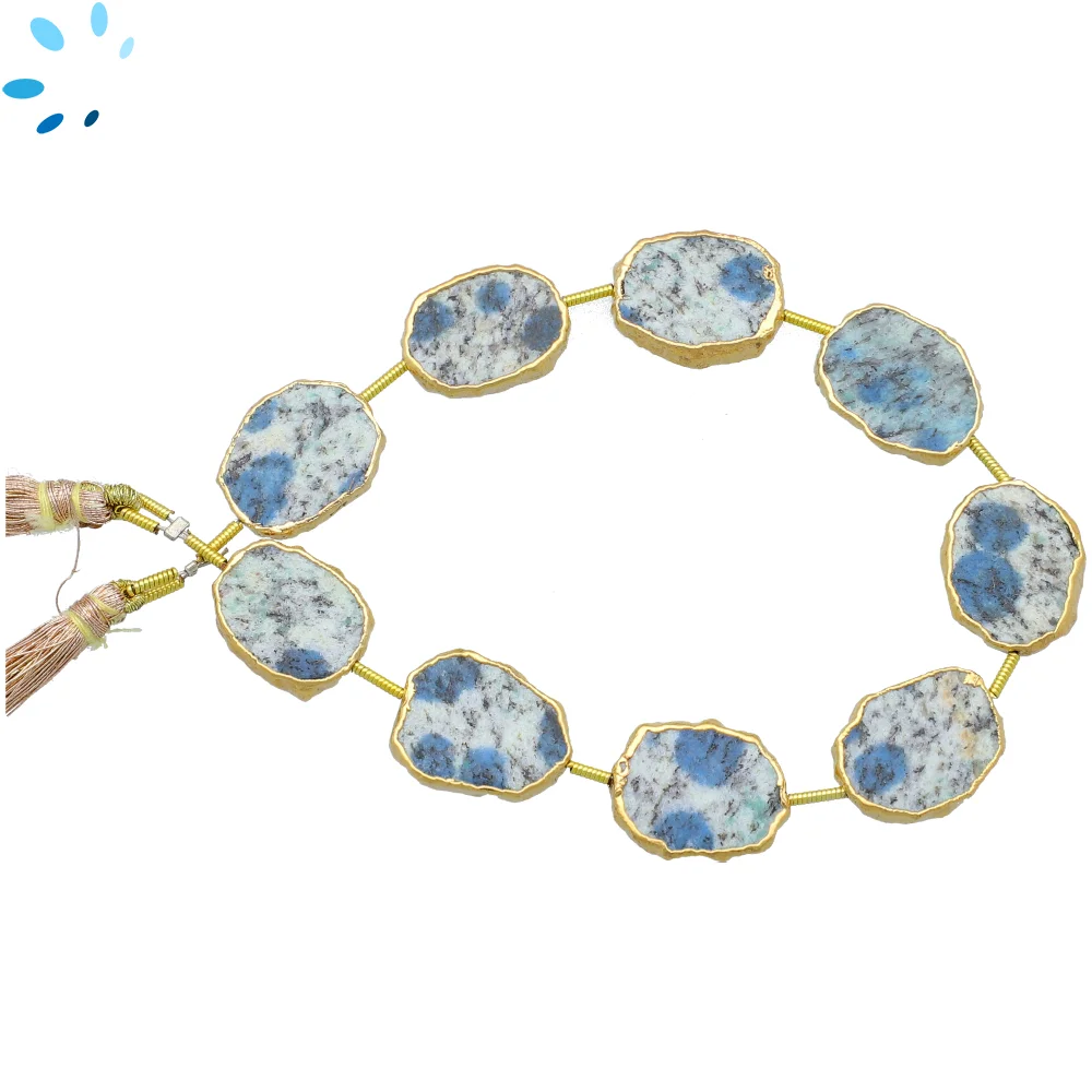 Dalmatian Jasper Top to Bottom Drilled Slice Beads 15x12mm - 18k Gold Electroplated