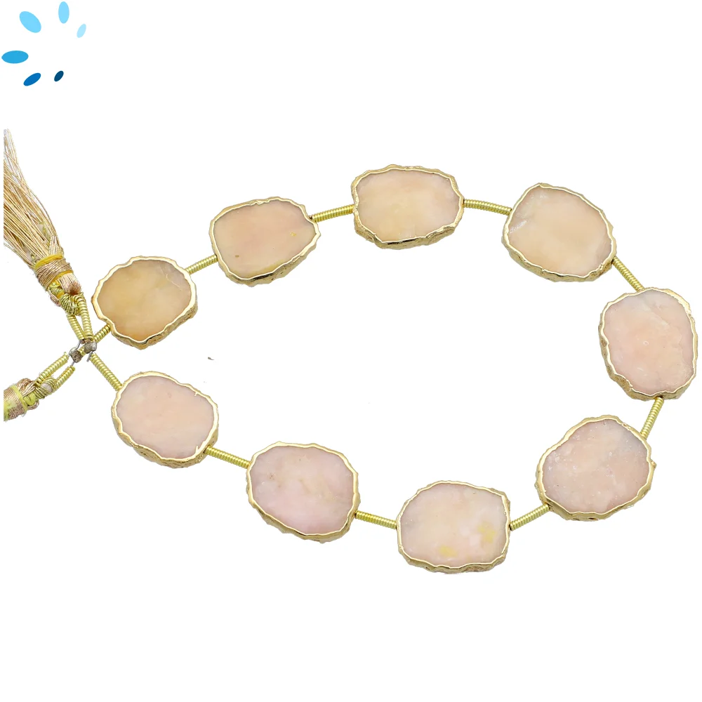 Pink Opal Top to Bottom Drilled Slice Beads 15x12mm - 18k Gold Electroplated
