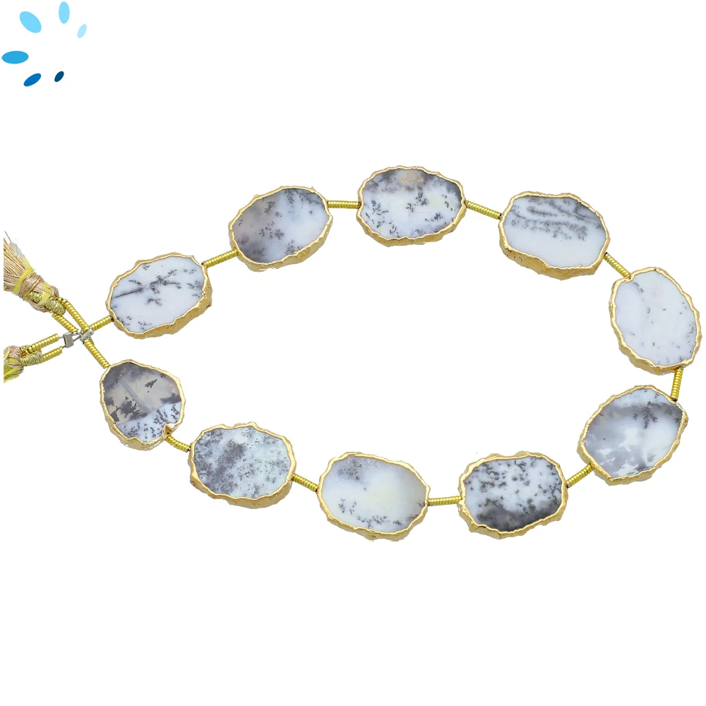 Dendrite Opal Top to Bottom Drilled Slice Beads 15x12mm - 18k Gold Electroplated