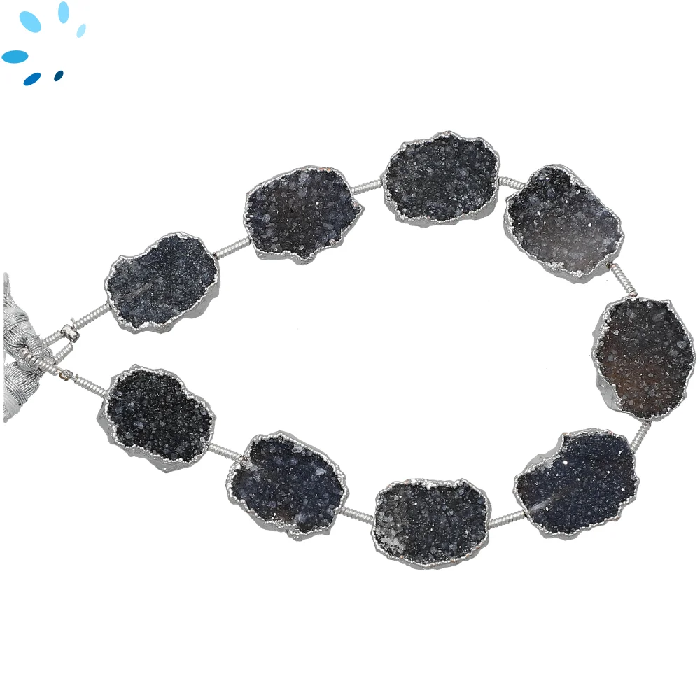Black Druzy Top to Bottom Drilled Slice Beads 15x12mm - Platinum Electroplated