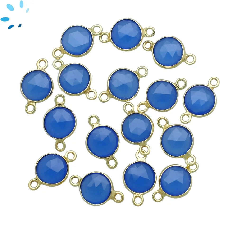 Blue Chalcedony Coin Bezel Connector 8mm - 18k Gold Plated Sterling Silver - Set of 4
