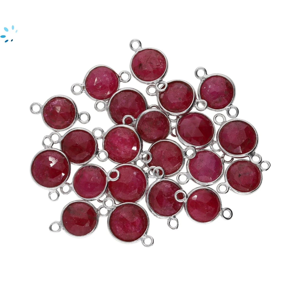 Ruby Dyed Corundum Coin Bezel Connector 9mm - Platinum Plated Sterling Silver - Set of 4