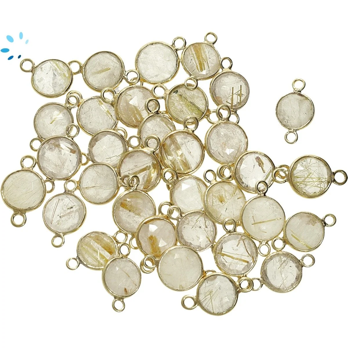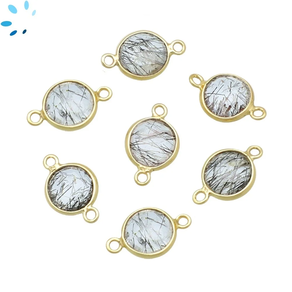 Rutilated Quartz Coin Bezel Connector 9mm - 18k Gold Plated Sterling Silver - Set of 4