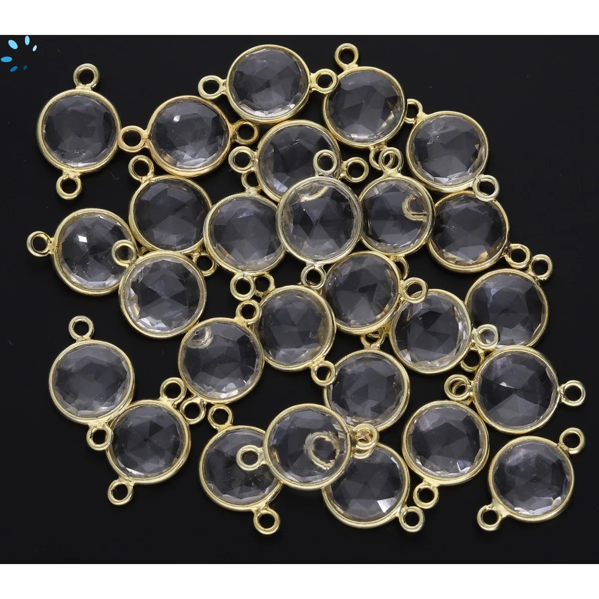 Crystal Quartz Coin Bezel Connector 9mm - 18k Gold Plated Sterling Silver - Set of 4