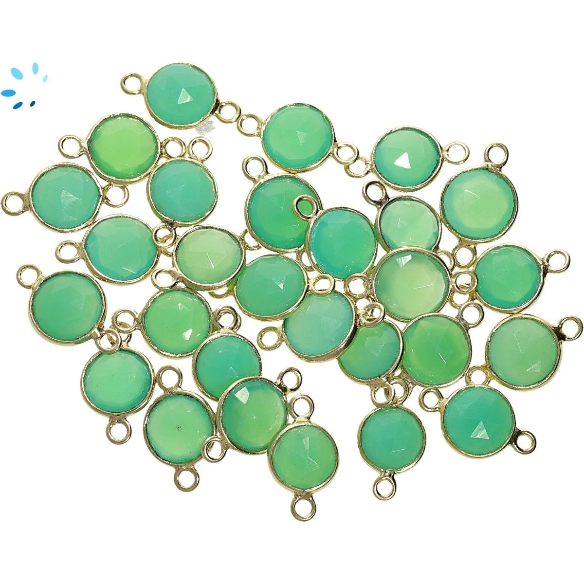 Chrysoprase Chalcedony Coin Bezel Connector 9mm - 18k Gold Plated Sterling Silver - Set of 4