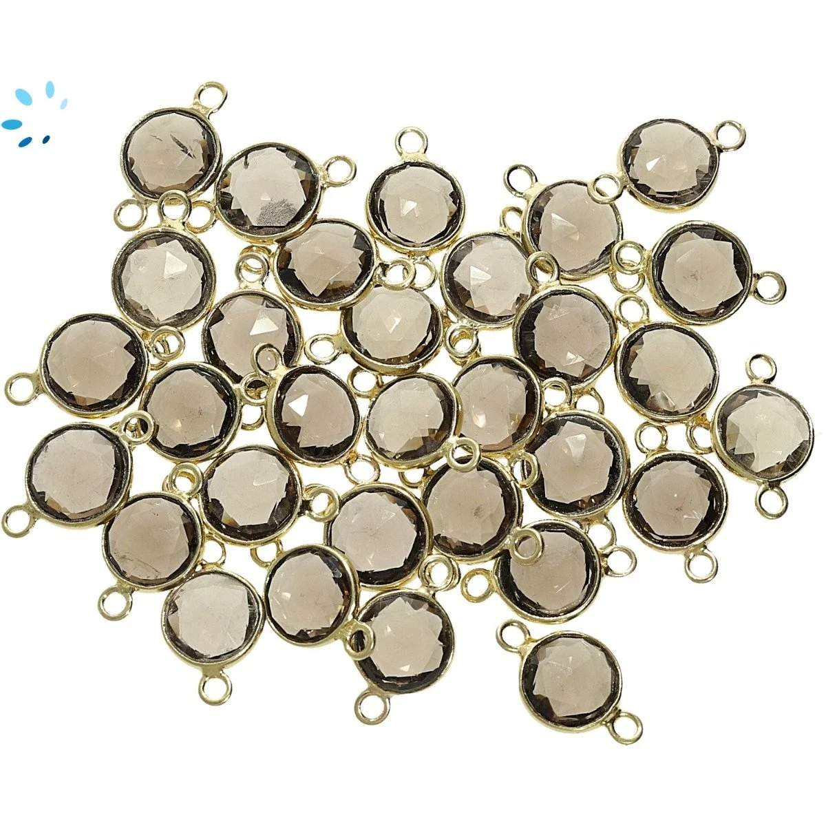 Smoky Quartz Coin Bezel Connector 9mm - 18k Gold Plated Sterling Silver - Set of 4