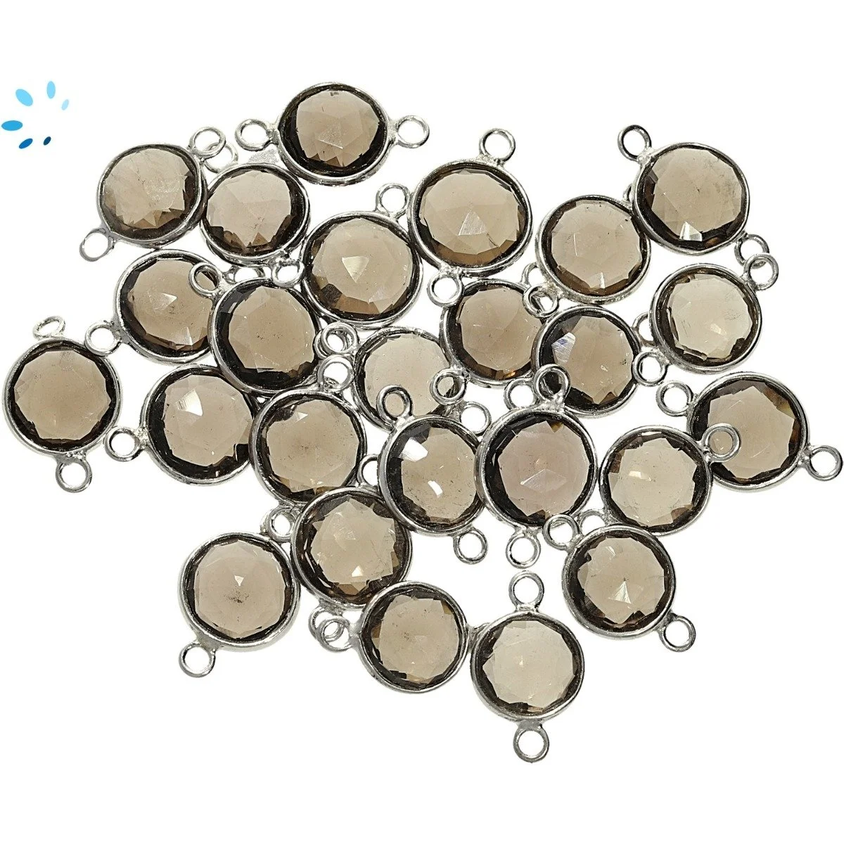 Smoky Quartz Coin Bezel Connector 9mm - Platinum Plated Sterling Silver - Set of 4