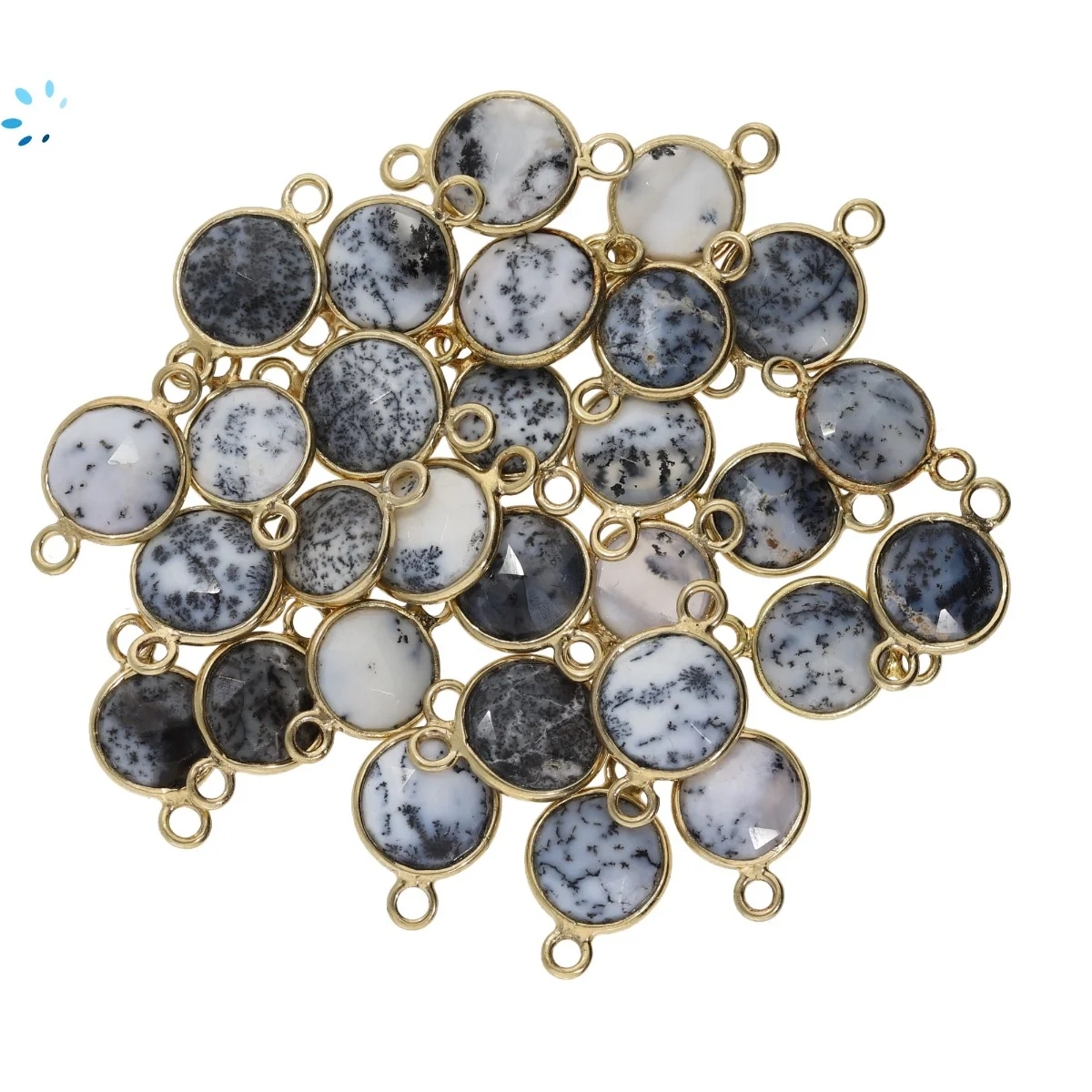 Dendrite Opal Coin Bezel Connector 8mm - 18k Gold Plated Sterling Silver - Set of 4