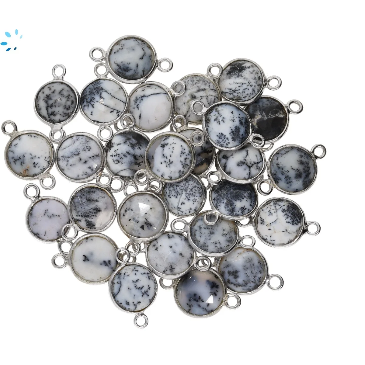Dendrite Opal Coin Bezel Connector 8mm - Platinum Plated Sterling Silver - Set of 4