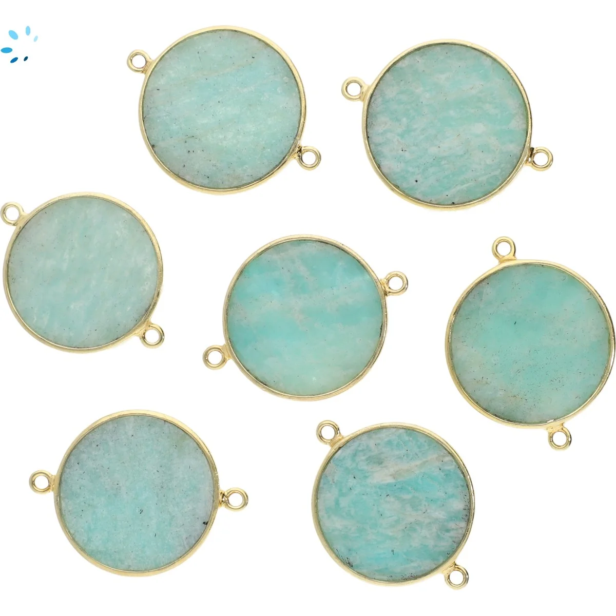 Amazonite Coin Bezel Connector 19mm - 18k Gold Plated Sterling Silver - Set of 2