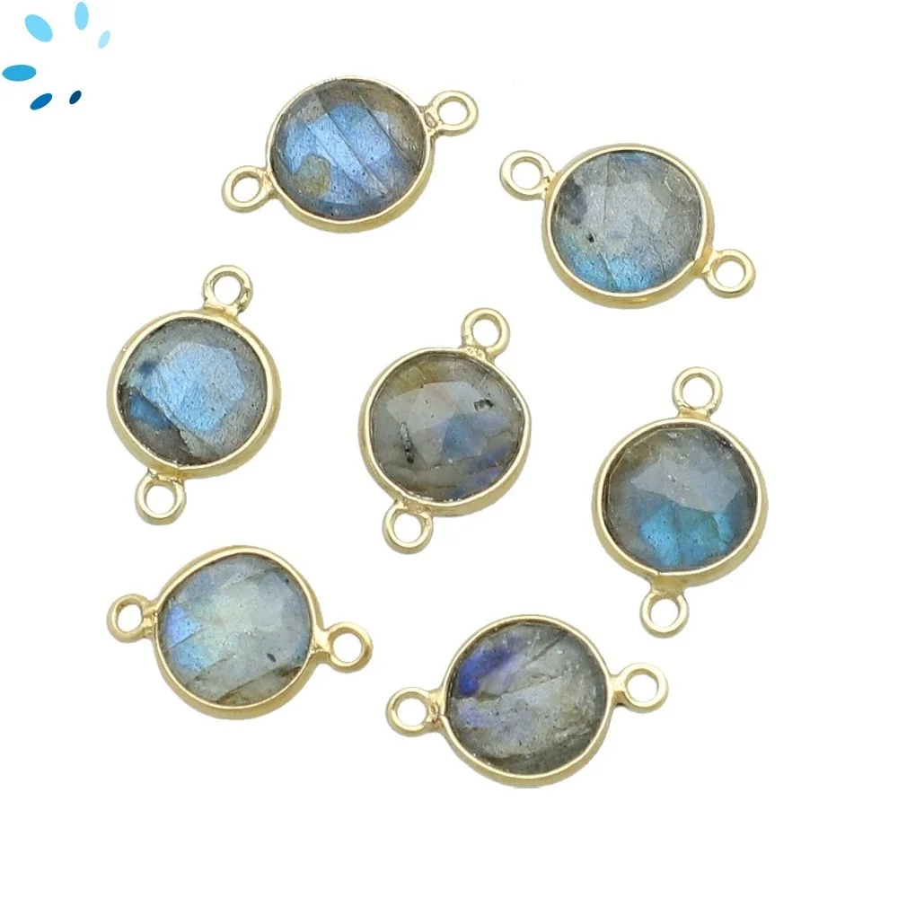 Gray Moonstone Coin Bezel Connector 9mm - 18k Gold Plated Sterling Silver - Set of 4