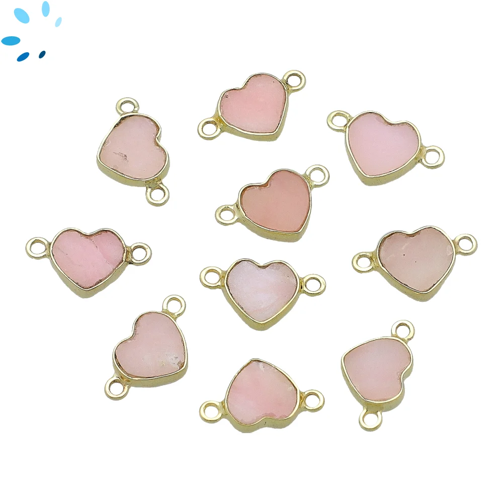 Pink Opal Heart Bezel Connector 9mm - 18k Gold Plated Sterling Silver - Set of 4