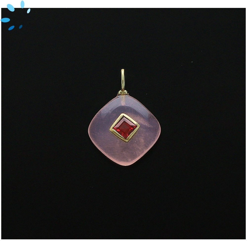Rose Quartz & Garnet Diamond Inlay Charm Pendant 17mm - 18k Gold Plated Sterling Silver
