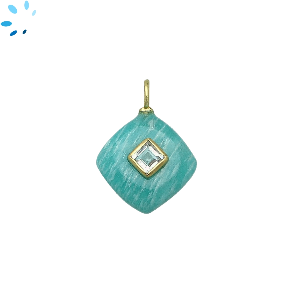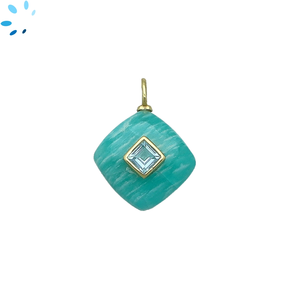 Amazonite & Blue Topaz Diamond Inlay Charm Pendant 17mm - 18k Gold Plated Sterling Silver