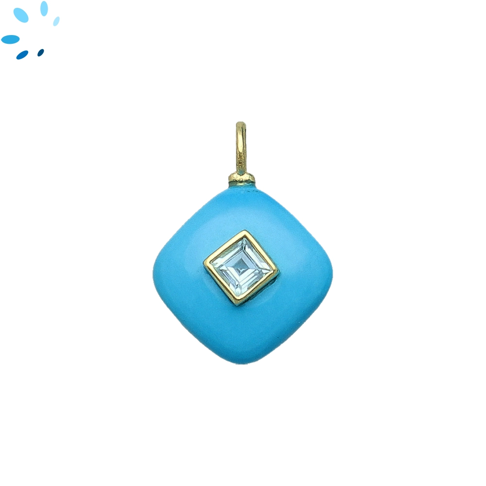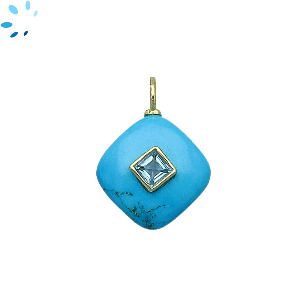 Turquoise Color Howlite & Blue Topaz Diamond Inlay Charm Pendant 17mm - 18k Gold Plated Sterling Silver