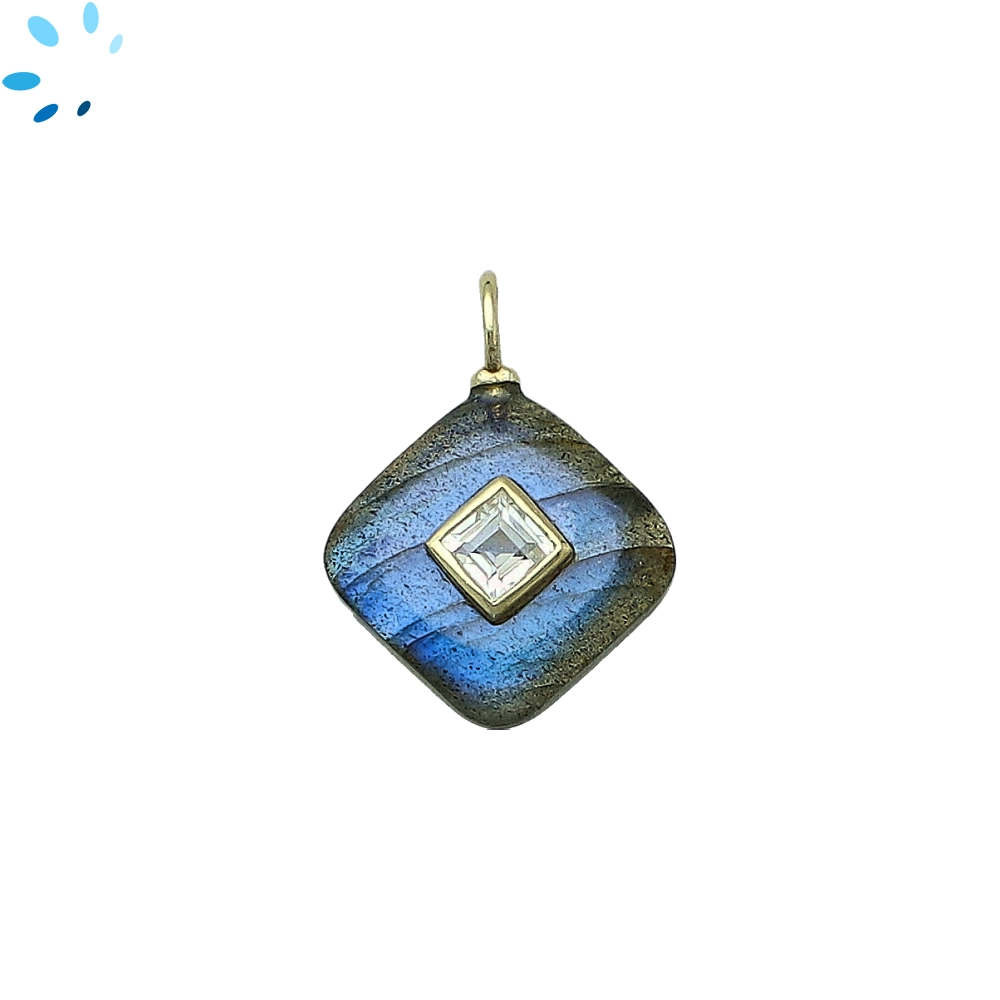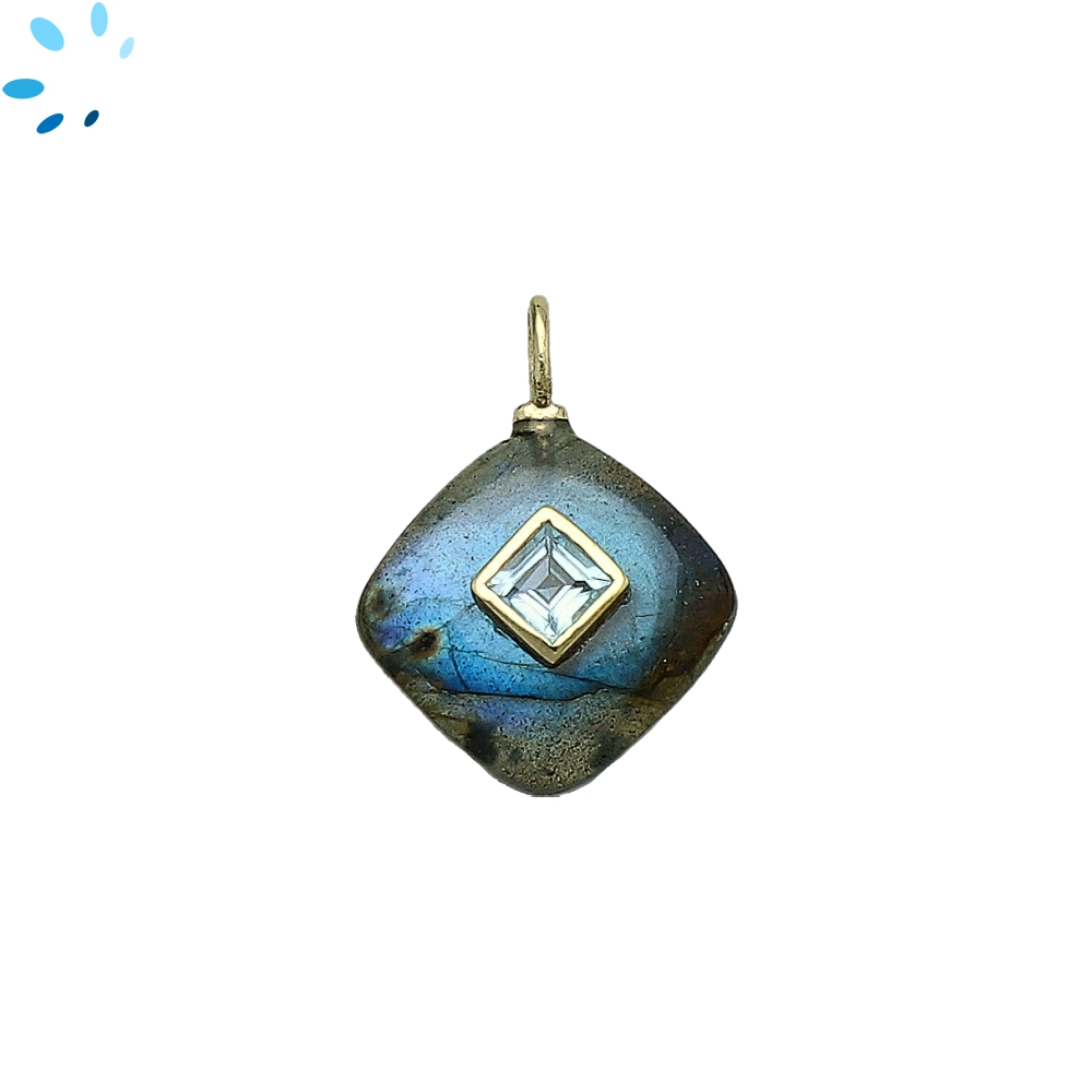 Labradorite & Blue Topaz Diamond Inlay Pendant Charm 17mm - 18k Gold Plated Sterling Silver
