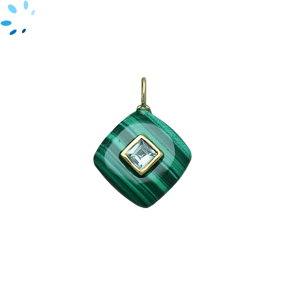 Malachite & Blue Topaz Diamond Inlay Pendant Charm 17mm - 18k Gold Plated Sterling Silver