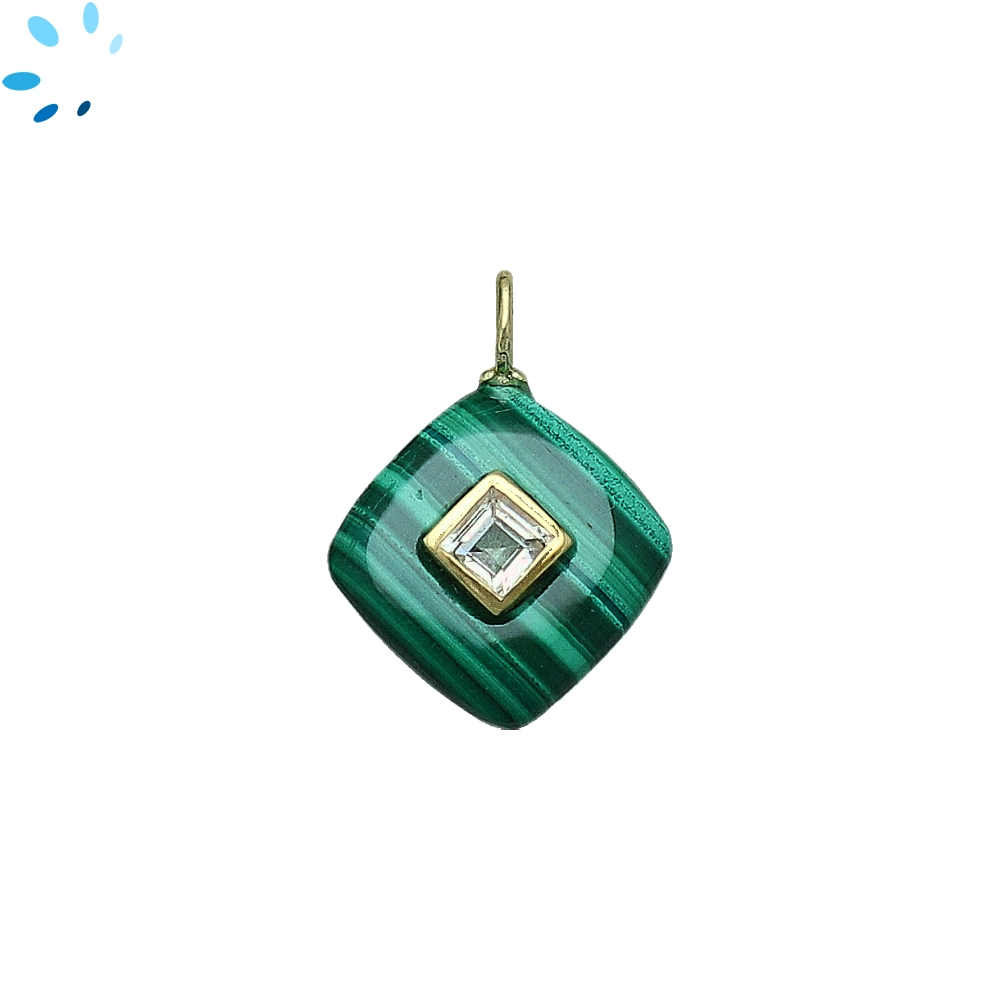 Malachite & White Topaz Diamond Inlay Charm Pendant 17mm - 18k Gold Plated Sterling Silver