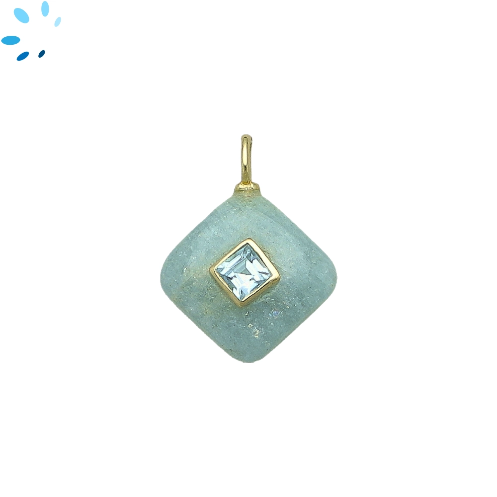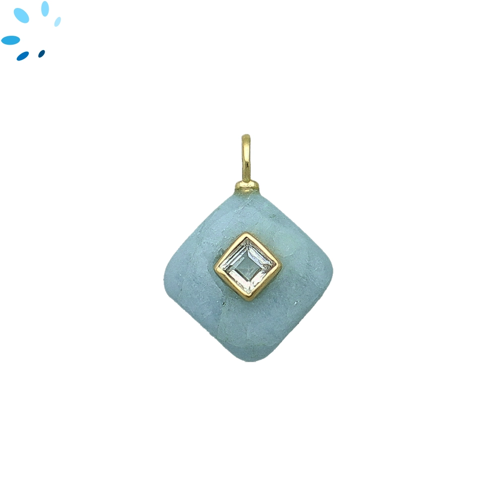 Aquamarine & White Topaz Diamond Inlay Charm Pendant 17mm - 18k Gold Plated Sterling Silver