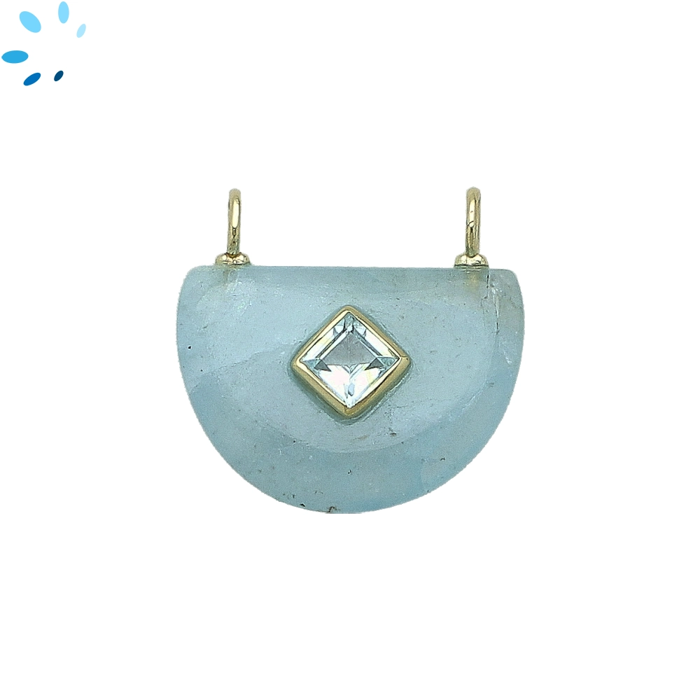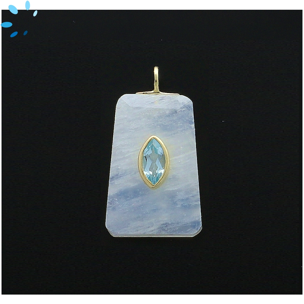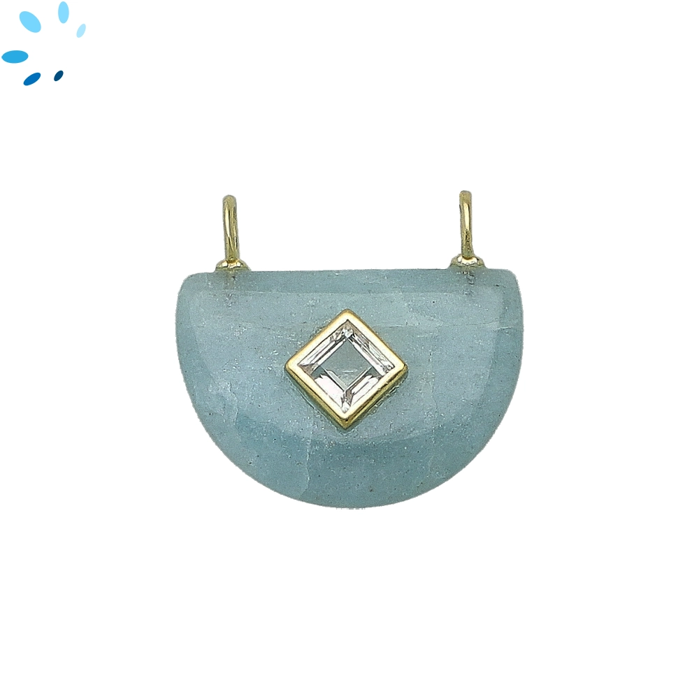 Aquamarine & White Topaz Fancy Shape Inlay Charm Pendant 24x16mm - 18k Gold Plated Sterling Silver