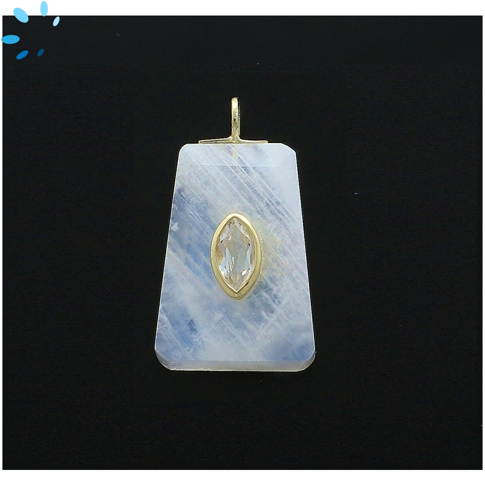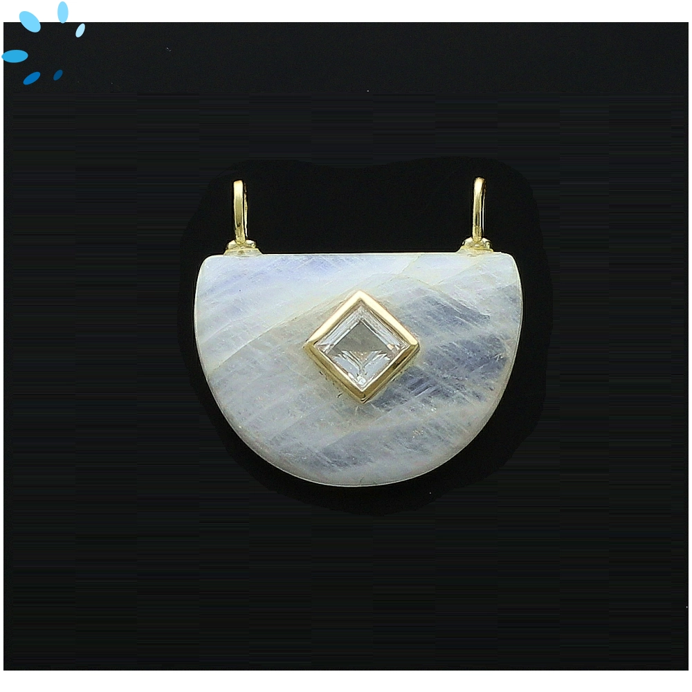 Rainbow Moonstone & White Topaz Fancy Shape Inlay Pendant Charm 24x16mm - 18k Gold Plated Sterling Silver