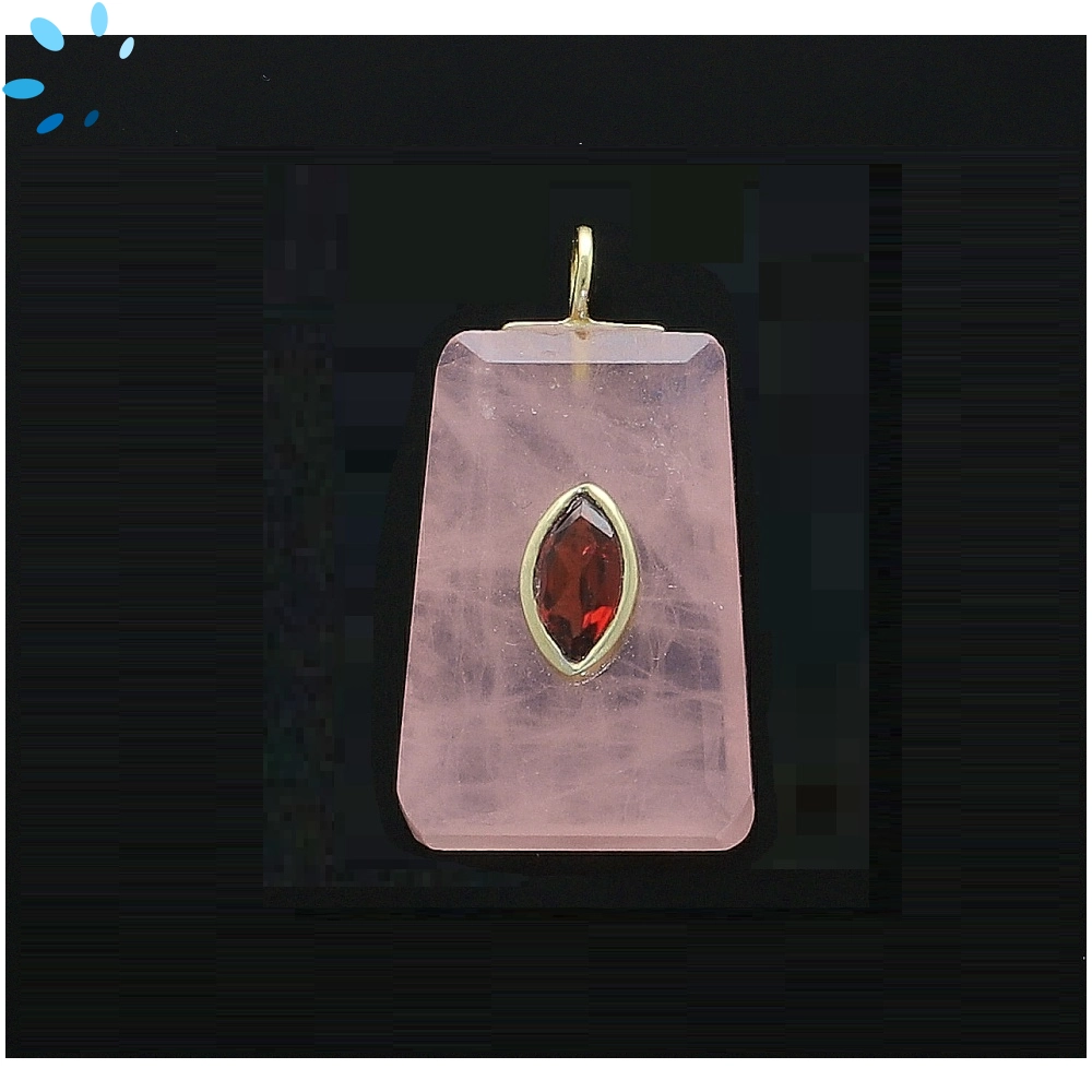 Rose Quartz & Garnet Fancy Shape Inlay Charm Pendant 24x16mm - 18k Gold Plated Sterling Silver