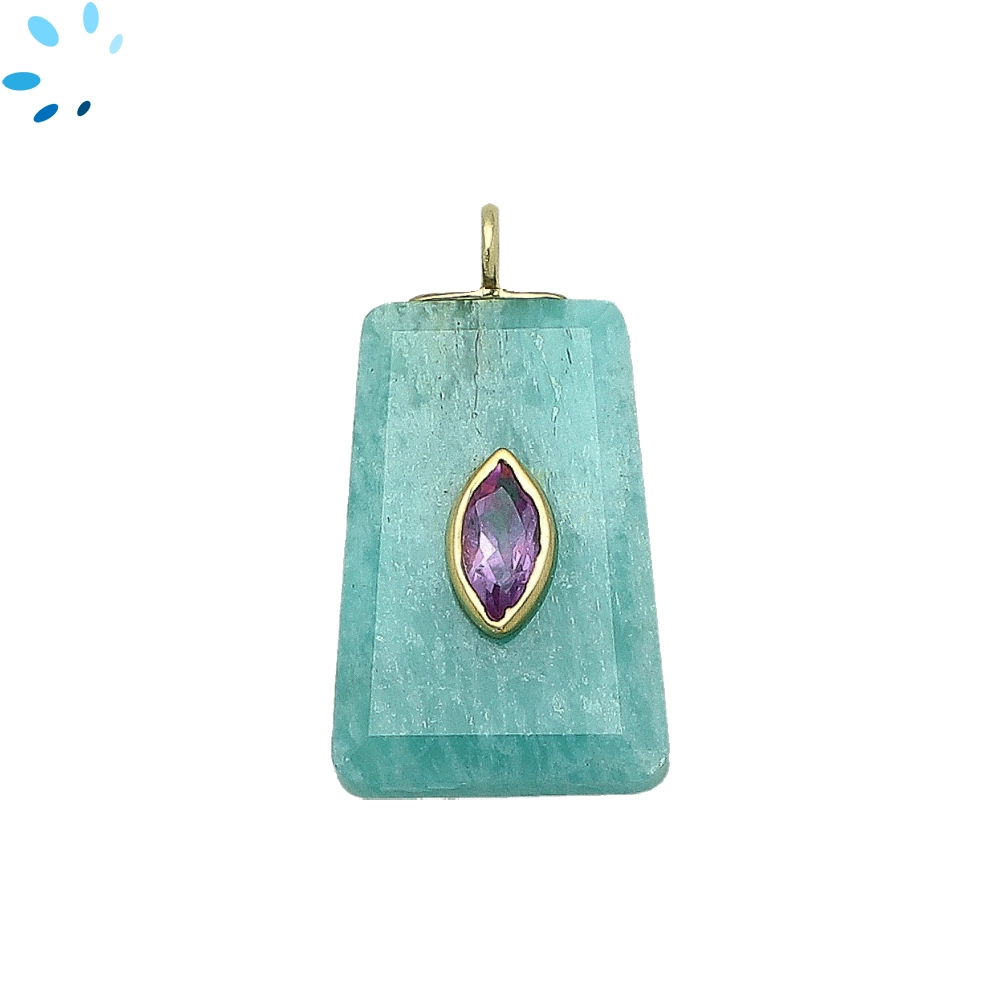 Amazonite & Amethyst Fancy Shape Inlay Pendant Charm 24x16mm - 18k Gold Plated Sterling Silver