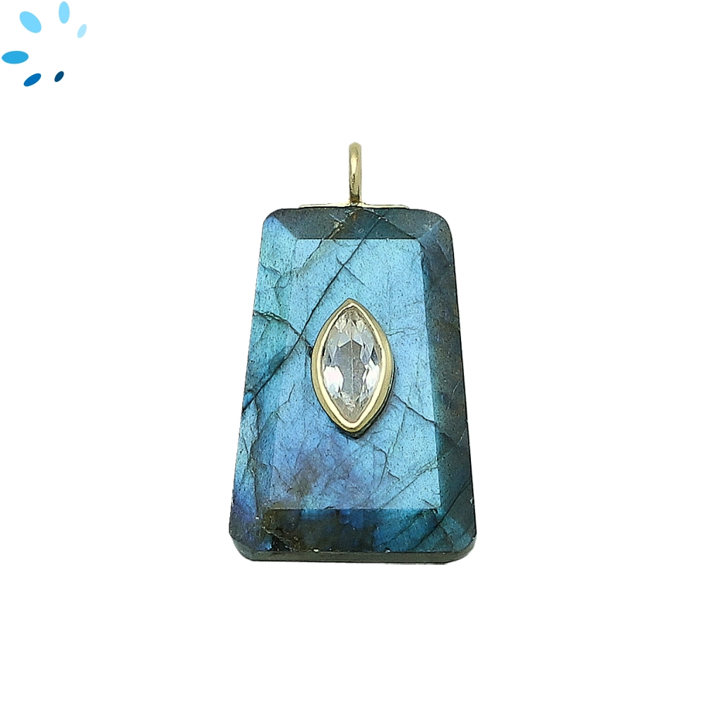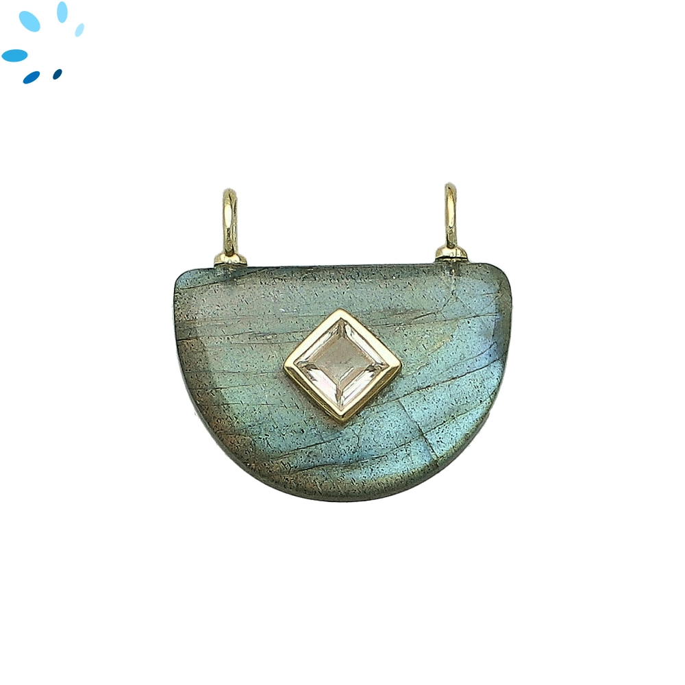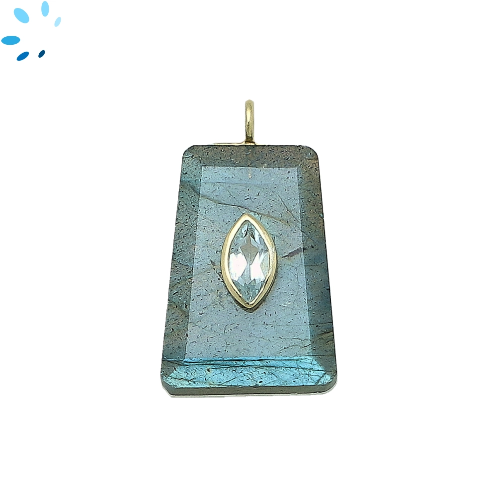 Labradorite & White Topaz Fancy Shape Inlay Pendant Charm 24x16mm - 18k Gold Plated Sterling Silver
