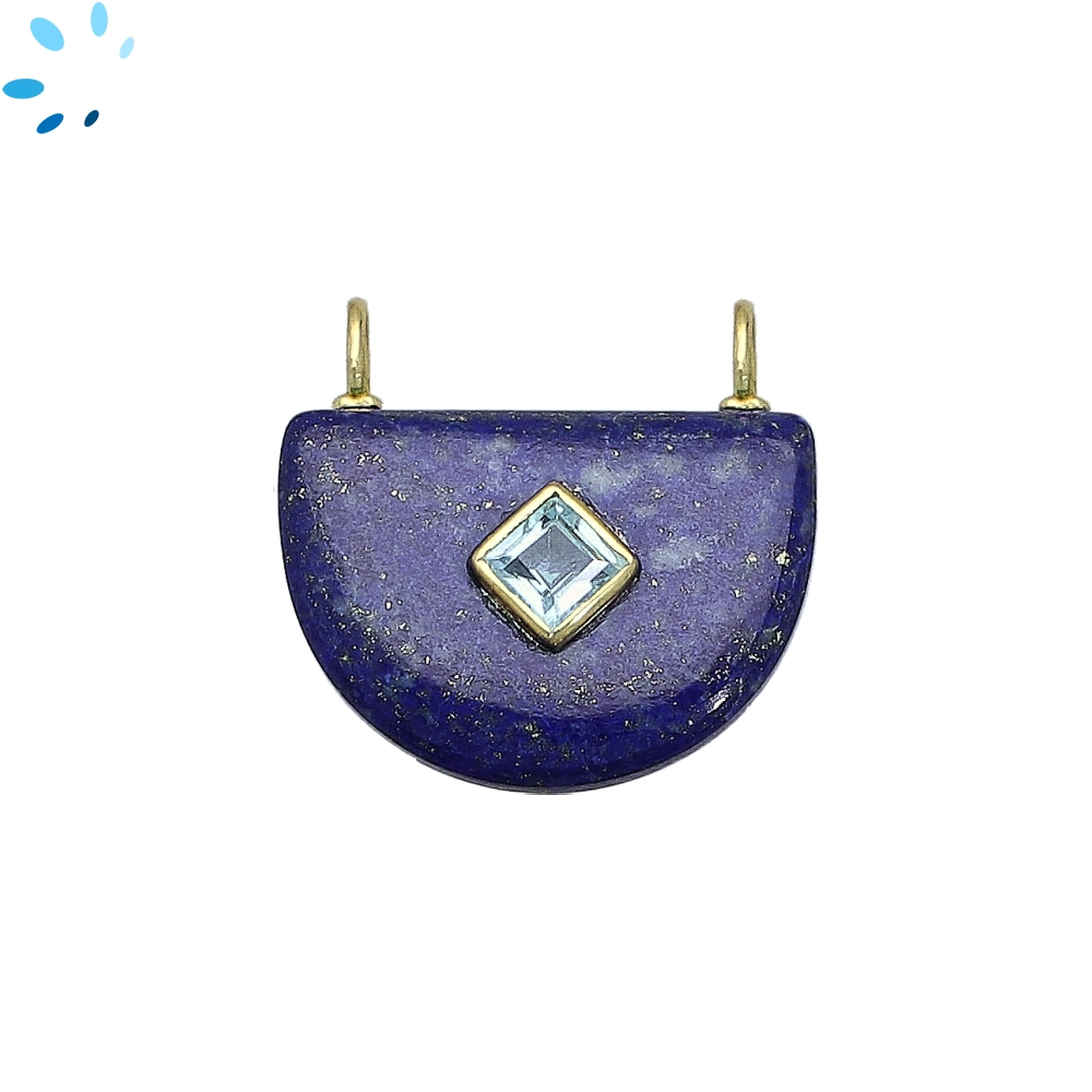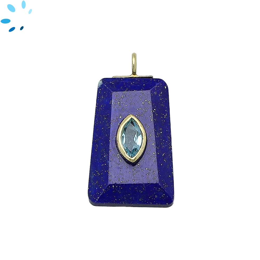 Lapis & Blue Topaz Fancy Shape Inlay Charm Pendant 24x16mm - 18k Gold Plated Sterling Silver