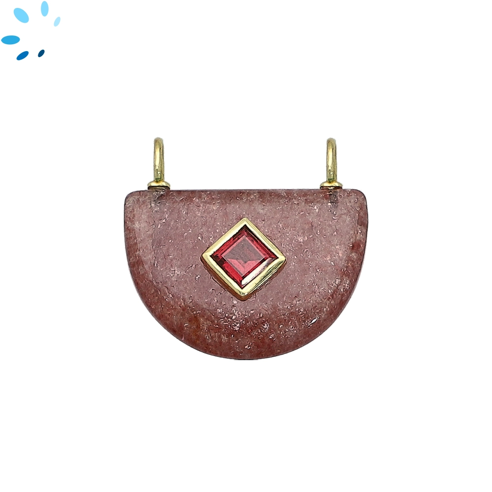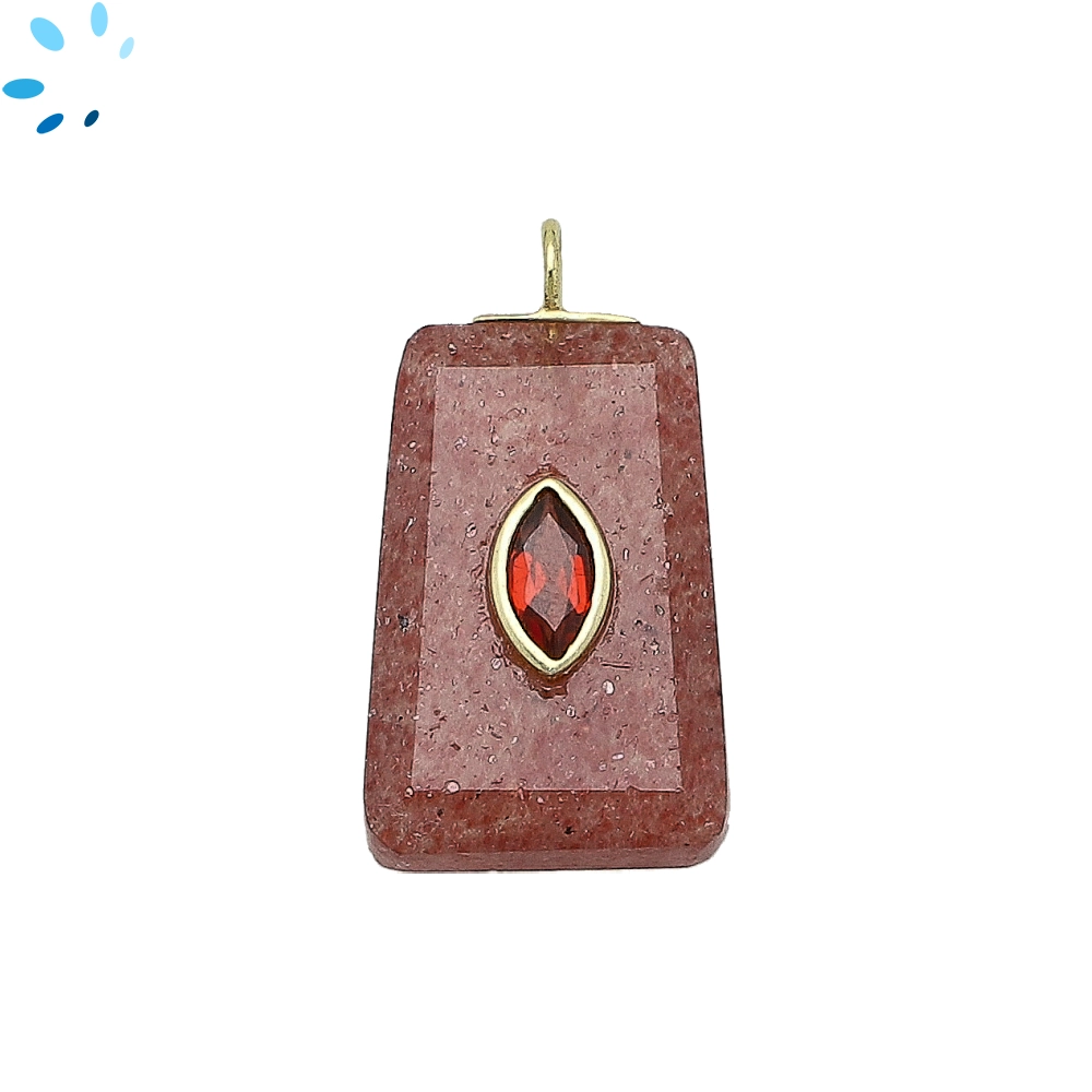 Strawberry Quartz & Garnet Fancy Shape Inlay Pendant Charm 24x16mm - 18k Gold Plated Sterling Silver