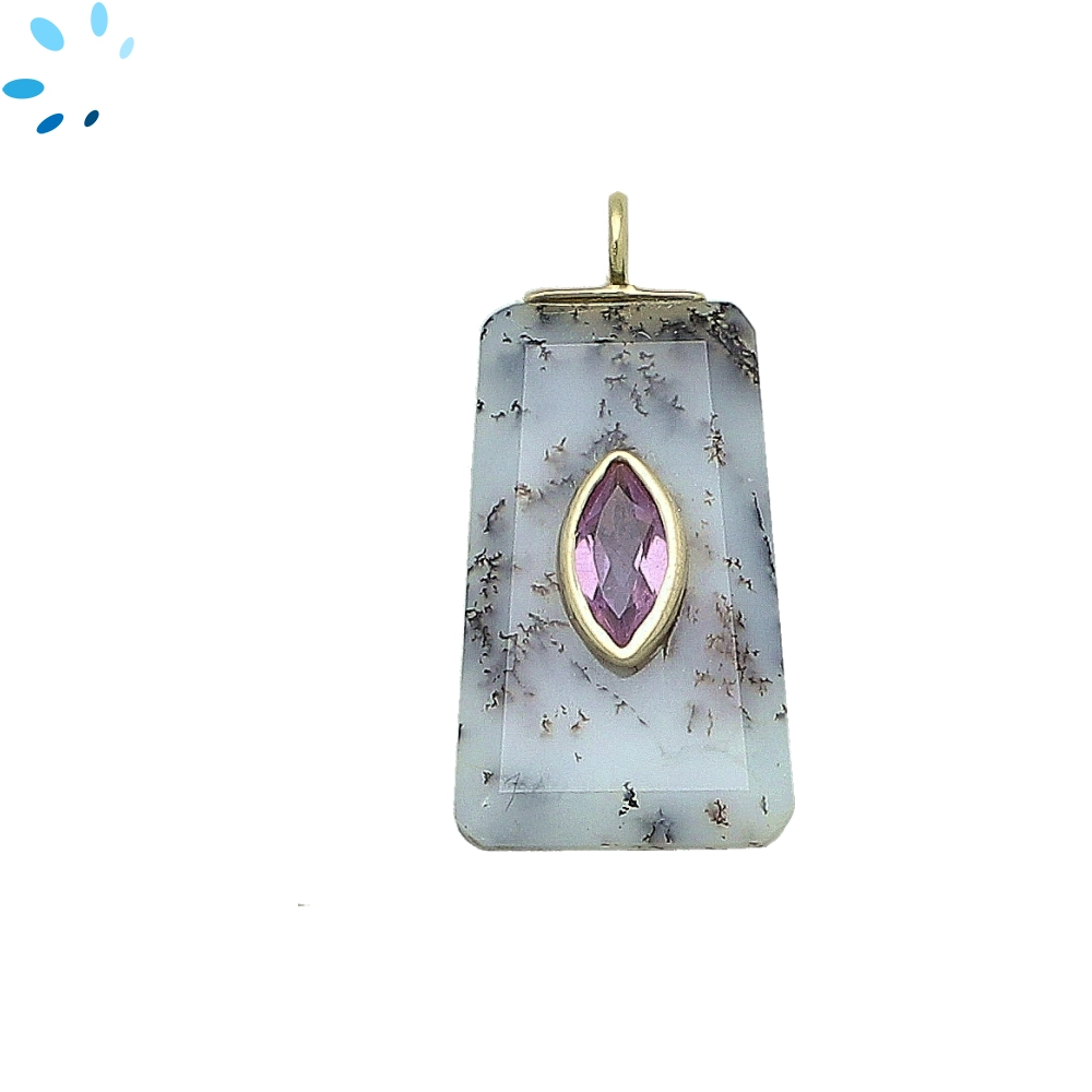 Dendrite Opal & Amethyst Fancy Shape Inlay Pendant Charm 24x15mm - 18k Gold Plated Sterling Silver