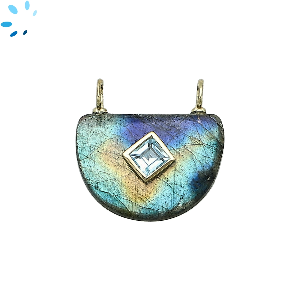 Labradorite & Blue Topaz Fancy Shape Inlay Pendant Charm 24x16mm - 18k Gold Plated Sterling Silver