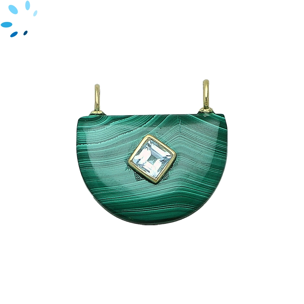 Malachite & White Topaz Fancy Shape Inlay Charm Pendant 24x16mm - 18k Gold Plated Sterling Silver