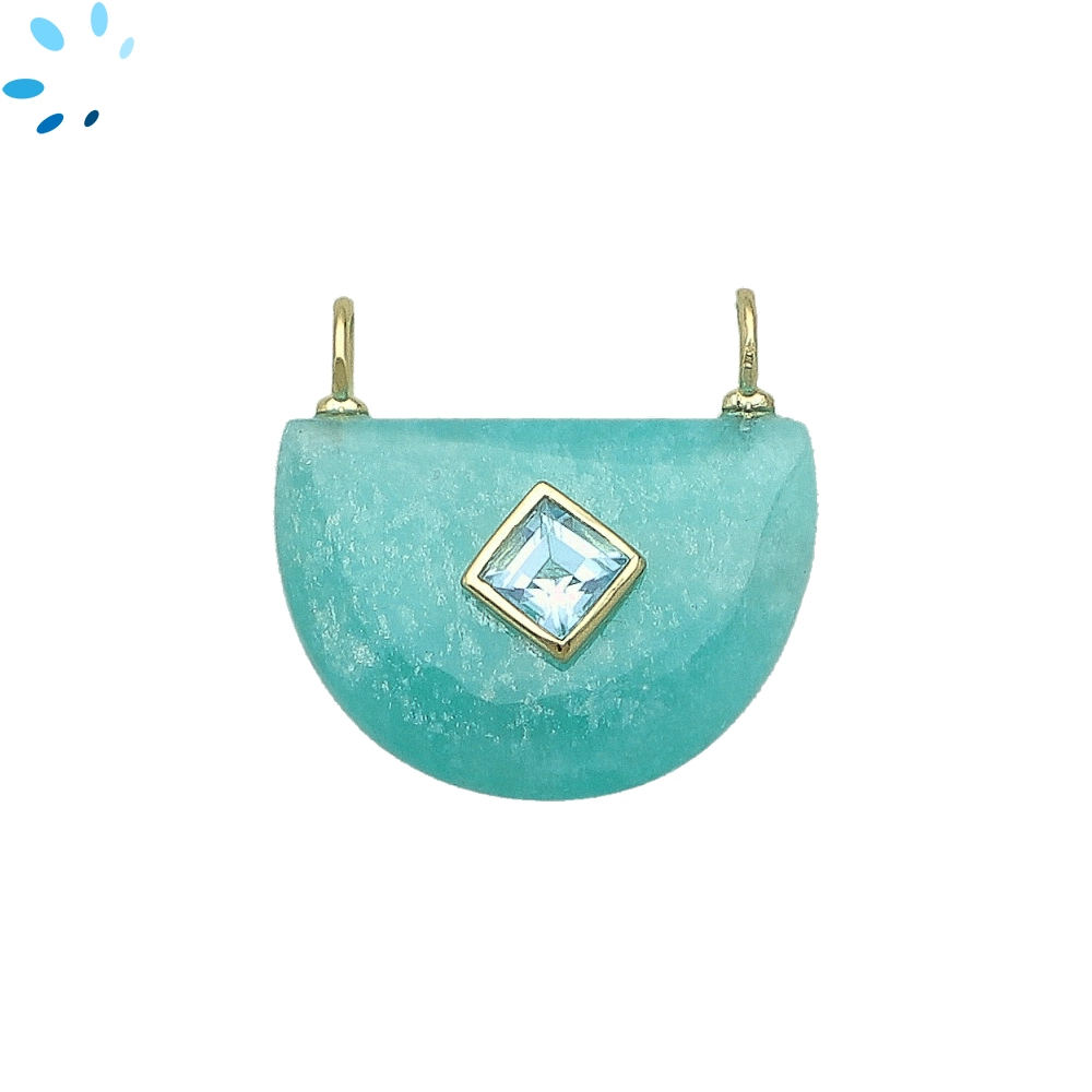 Amazonite & Blue Topaz Fancy Shape Inlay Pendant Charm 24x16mm - 18k Gold Plated Sterling Silver