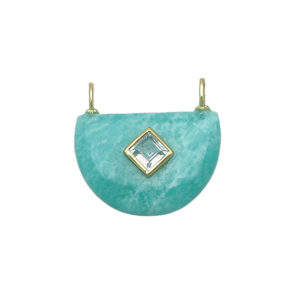 Amazonite & White Topaz Fancy Shape Inlay Charm Pendant 24x16mm - 18k Gold Plated Sterling Silver