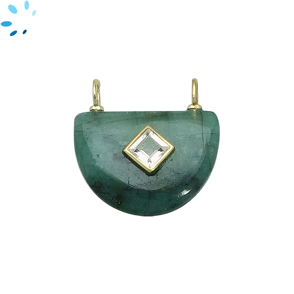 Raw Emerald & White Topaz Fancy Shape Inlay Pendant Charm 24x16mm - 18k Gold Plated Sterling Silver