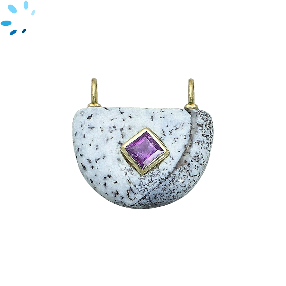 Dendrite Opal & Amethyst Fancy Shape Inlay Charm Pendant 24x16mm - 18k Gold Plated Sterling Silver