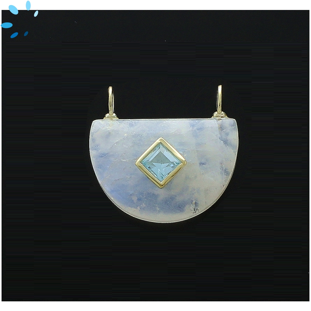 Rainbow Moonstone & Blue Topaz Fancy Shape Inlay Pendant Charm 24x16mm - 18k Gold Plated Sterling Silver