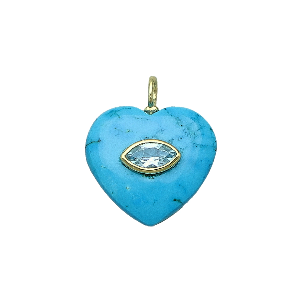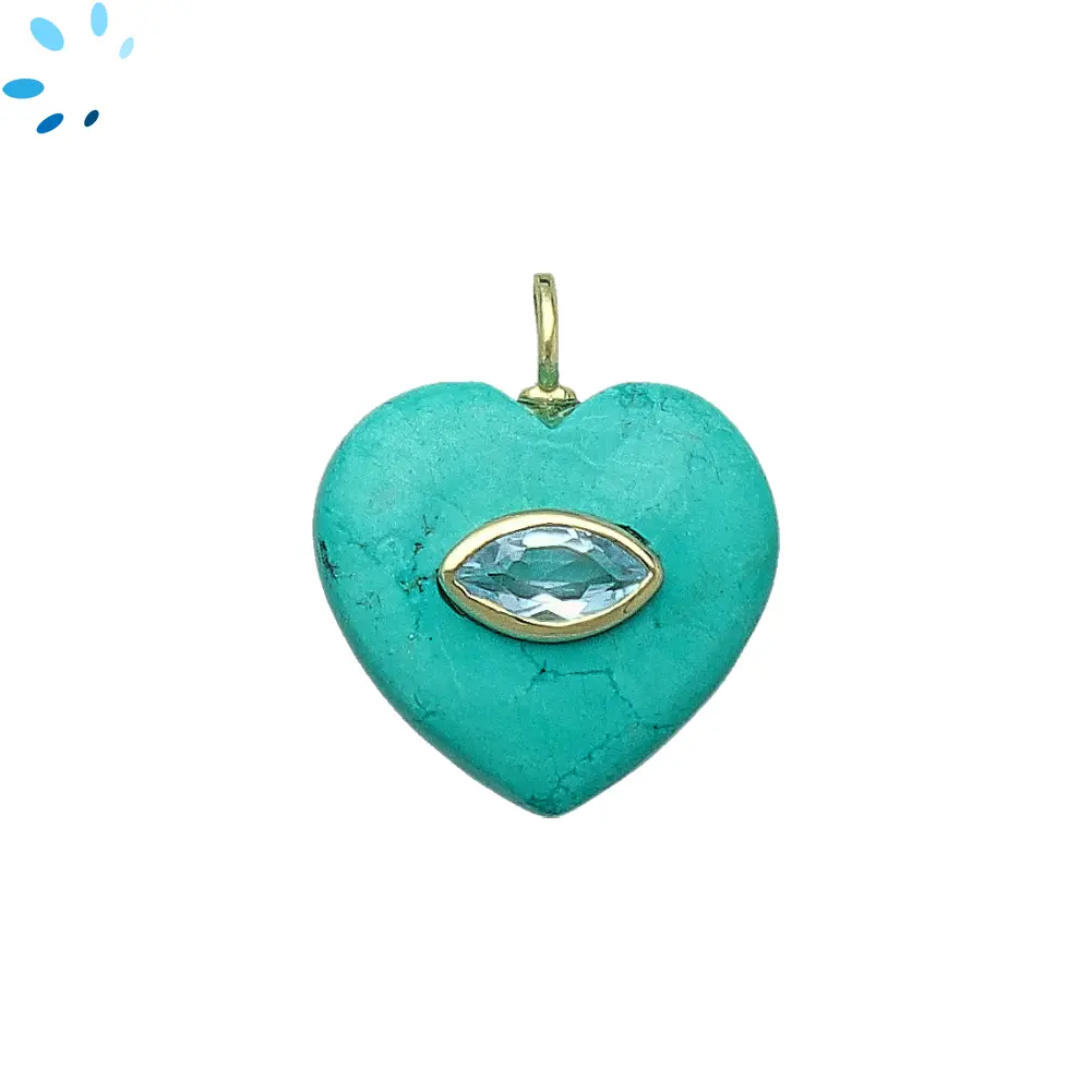 Turquoise Color Howlite & Blue Topaz Heart Inlay Pendant Charm 19mm - 18k Gold Plated Sterling Silver