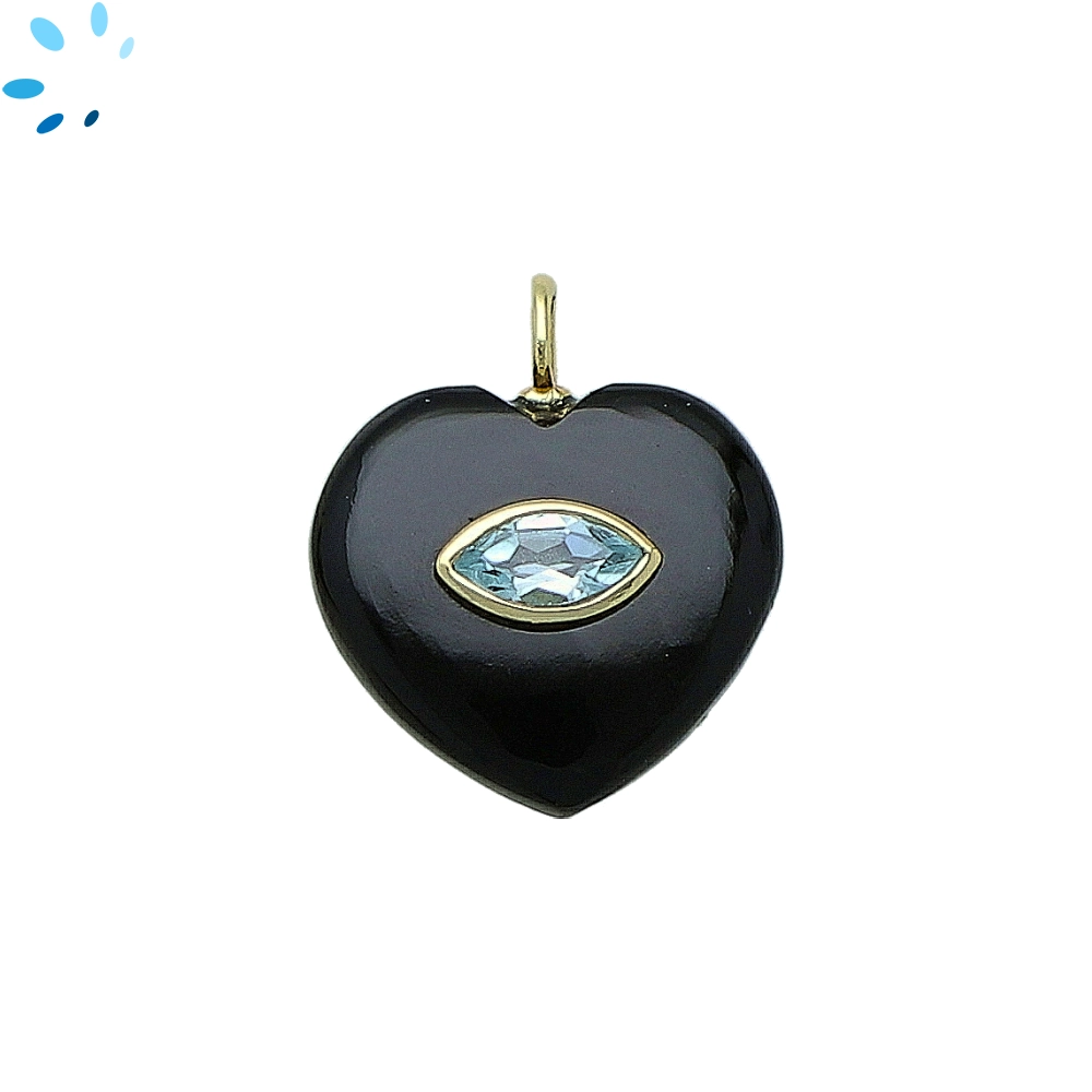 Black Onyx & Blue Topaz Heart Inlay Pendant Charm 19mm - 18k Gold Plated Sterling Silver