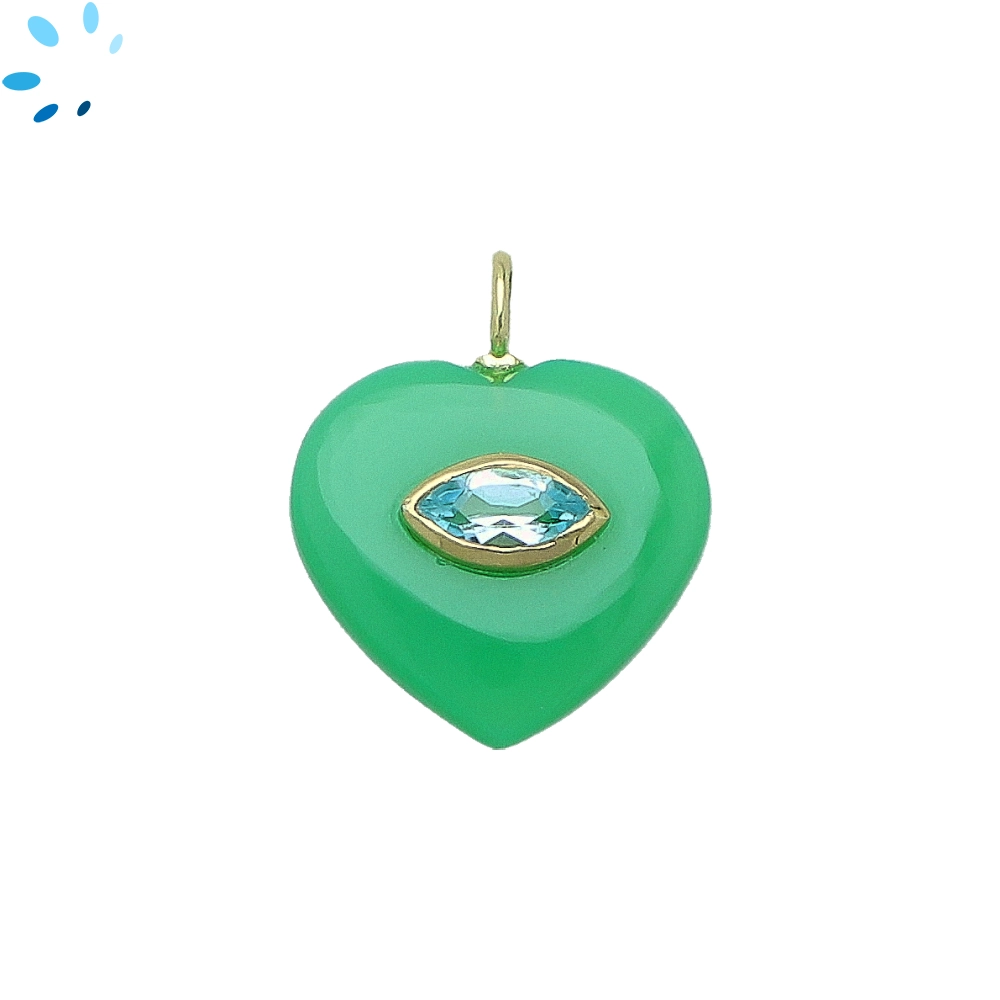 Chrysoprase Chalcedony & Blue Topaz Heart Inlay Charm Pendant 19mm - 18k Gold Plated Sterling Silver
