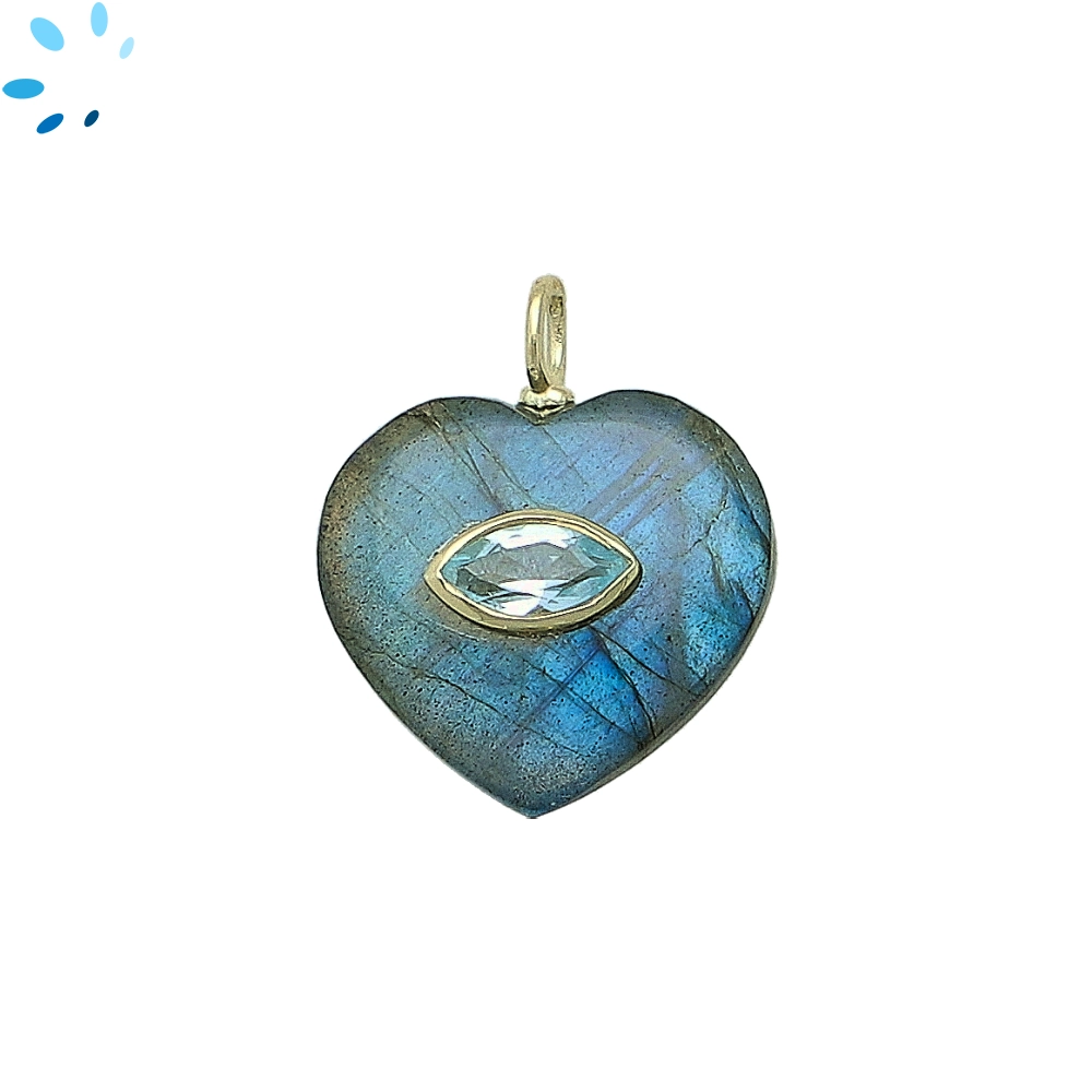 Labradorite & Blue Topaz Heart Inlay Charm Pendant 19mm - 18k Gold Plated Sterling Silver
