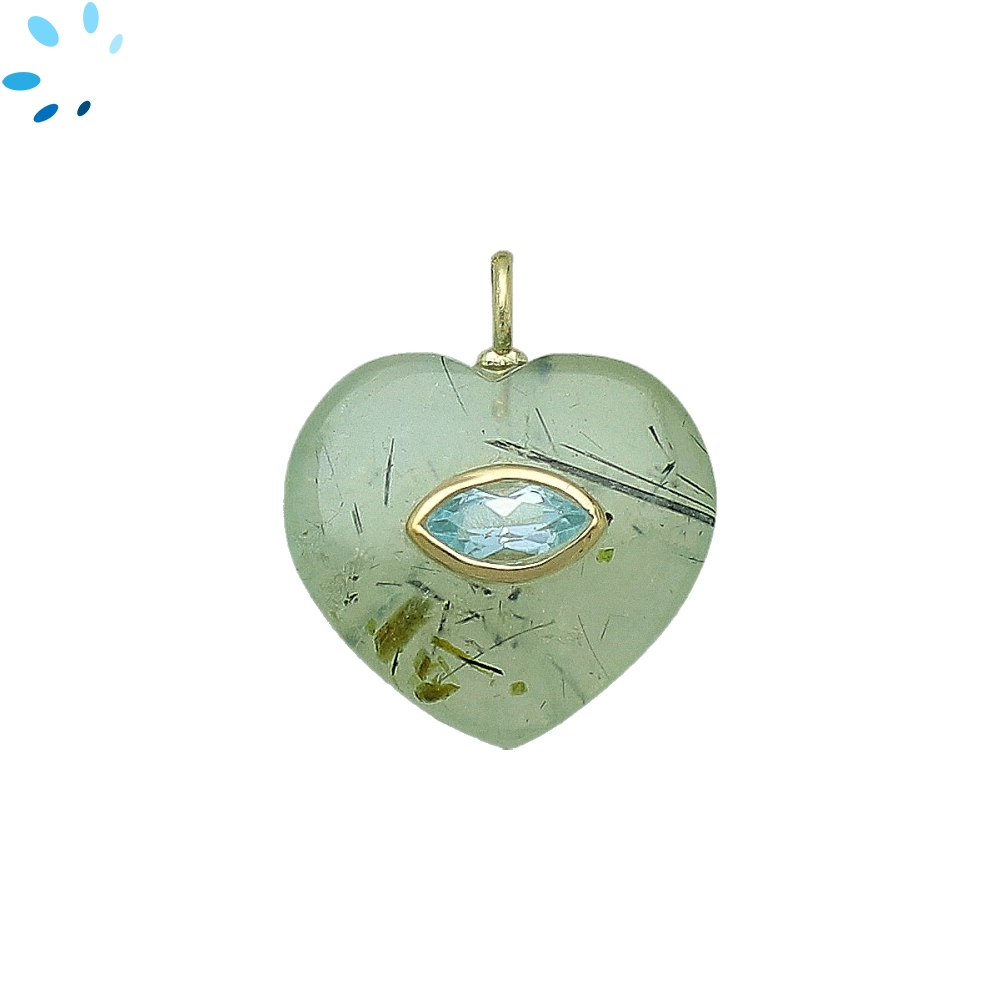 Prehnite & Blue Topaz Heart Inlay Charm Pendant 19mm - 18k Gold Plated Sterling Silver