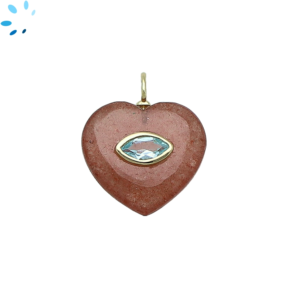 Strawberry Quartz & Blue Topaz Heart Inlay Pendant Charm 19mm - 18k Gold Plated Sterling Silver