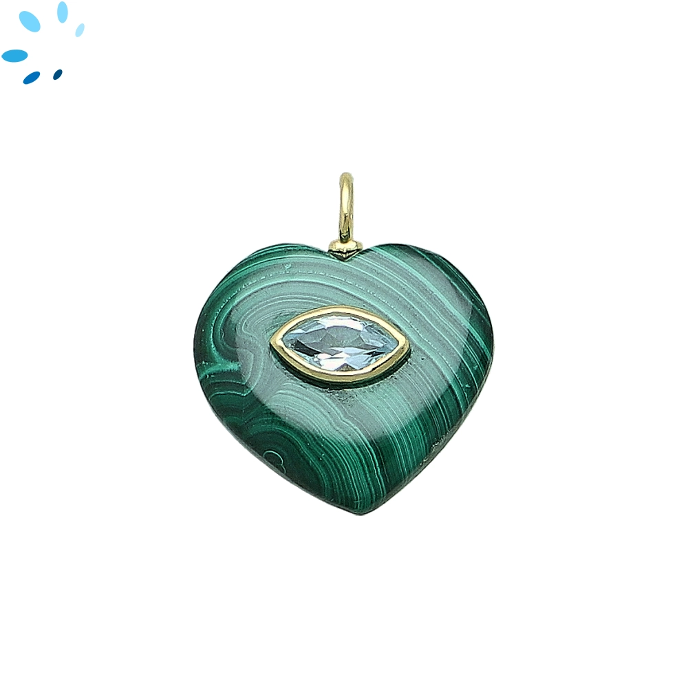 Malachite & Blue Topaz Heart Inlay Charm Pendant 19mm - 18k Gold Plated Sterling Silver